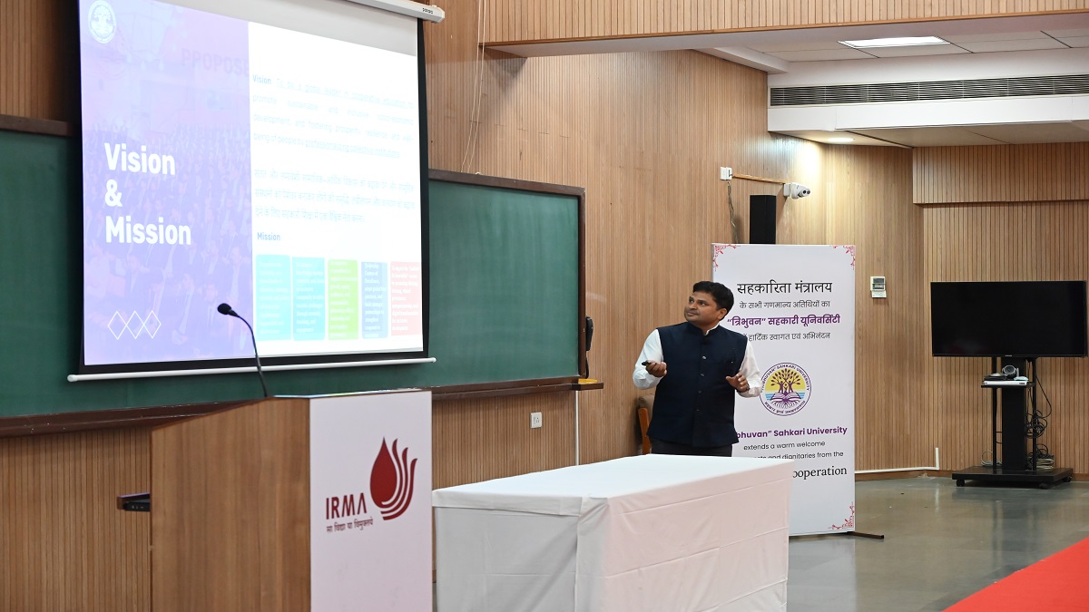 યુનિવર્સિટી ખાતે પ્રતિનિધિમંડળનું સ્વાગત IRMA ના ડિરેક્ટર અને યુનિવર્સિટીના ડીન પ્રોફેસર સસ્વતા નારાયણ બિસ્વાસ દ્વારા કરવામાં આવ્યું હતું. પ્રોફેસર શ્યામ સિંહે રાજ્ય સહકારી પરિસ્થિતિને મજબૂત બનાવવા માટે યુનિવર્સિટીના વ્યૂહાત્મક દ્રષ્ટિકોણનું માર્ગદર્શન રજૂ કર્યું હતું. આ દરમિયાન વિવિધ રાજ્યોની જરૂરિયાત મુજબના વૈવિધ્યપૂર્ણ શિક્ષણ કાર્યક્રમો અને નીતિ વિષયક સંશોધનો અંગે વિસ્તૃત વિચાર-વિમર્શ કરવામાં આવ્યો હતો.